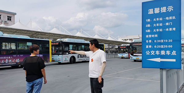 這已不是寇邦第一次向乘客介紹公交乘車(chē)信息了。今年1月份,安康火車(chē)站站前廣場(chǎng)交通整治工程正式竣工,公交車(chē)首末站隨即投入使用。為了讓乘客及時(shí)了解乘車(chē)信息,寇邦每天都會(huì)穿梭在人群中,熱情地向乘客介紹如何便捷乘車(chē)?!盎疖?chē)站每天來(lái)往的乘客挺多,乘坐公交車(chē)的人也多,有的不知道如何乘車(chē),我們有義務(wù)告知?!笨馨钫f(shuō)。